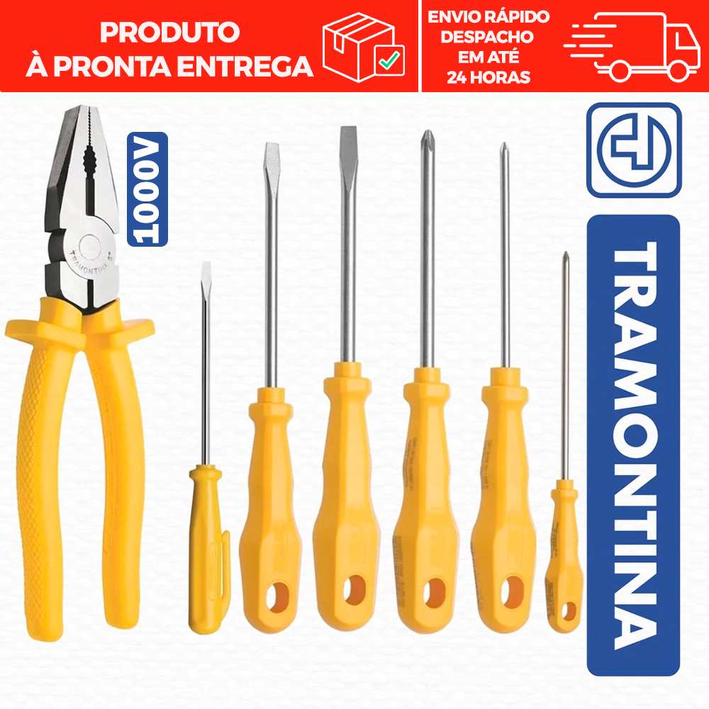 Kit Jogo de Ferramentas 3 Chave Fenda 3 Philips 1 Alicate Universal 1000v Tramontina Completo