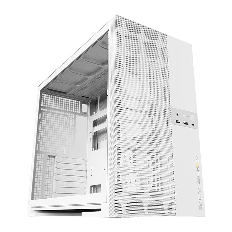 Gabinete Gamer Geometric Future Model 5 Nvidia Style, Mid Tower, ATX, Lateral em Vidro Temperado, Sem FANs, Branco - GEO-M5V-W