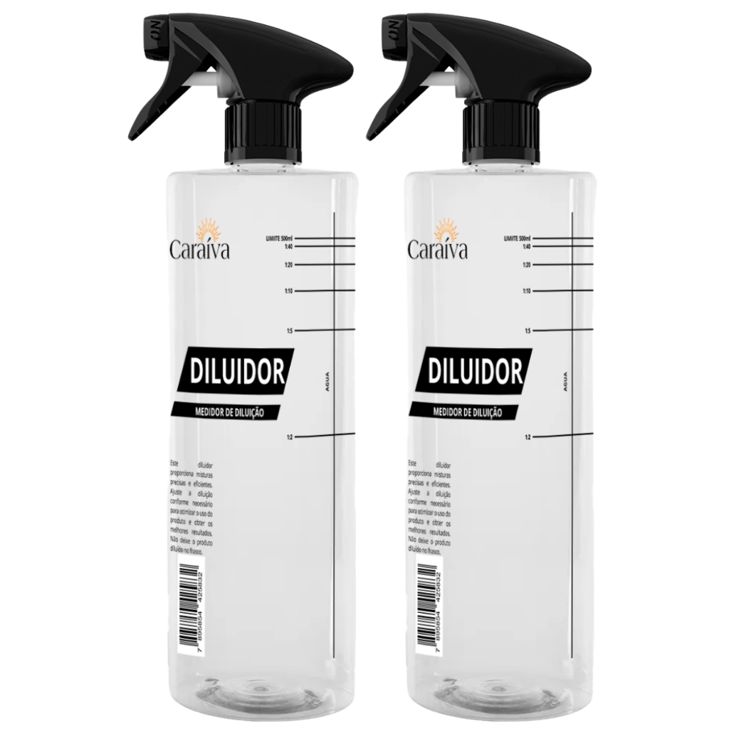 Frasco Para Diluição Com Pulverizador Gerador De Espuma 500ml Caraíva 2 Unidades Medidor de Diluição