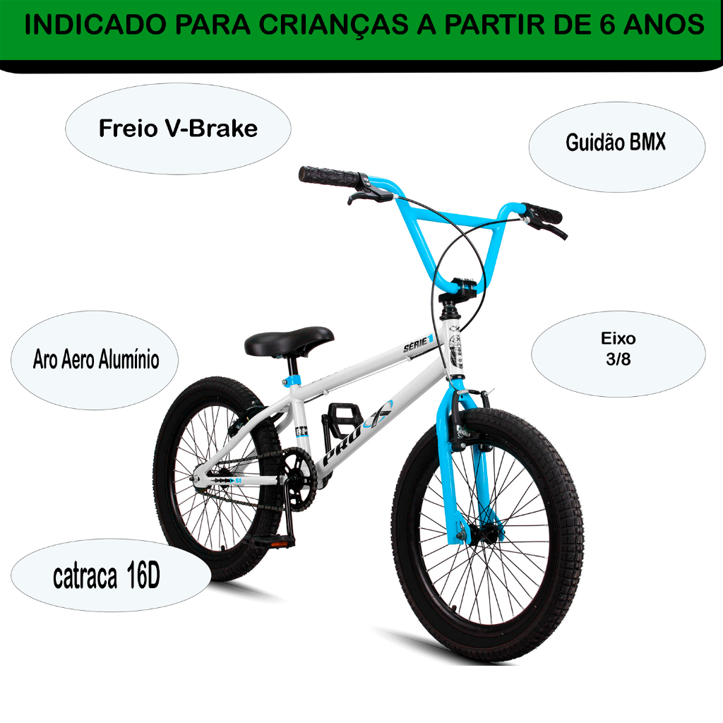 Bicicleta Aro 20 BMX Pro-X Série 1 freio V-Brake aros Aero Infantil Meninos