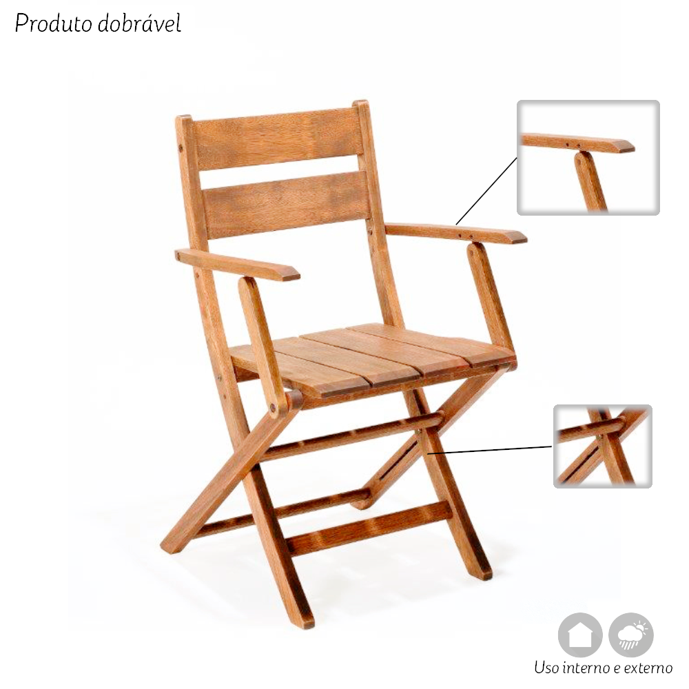 Cadeira Dobrável de Madeira Maciça com Braços Verona Ipanema Mestra Móveis
