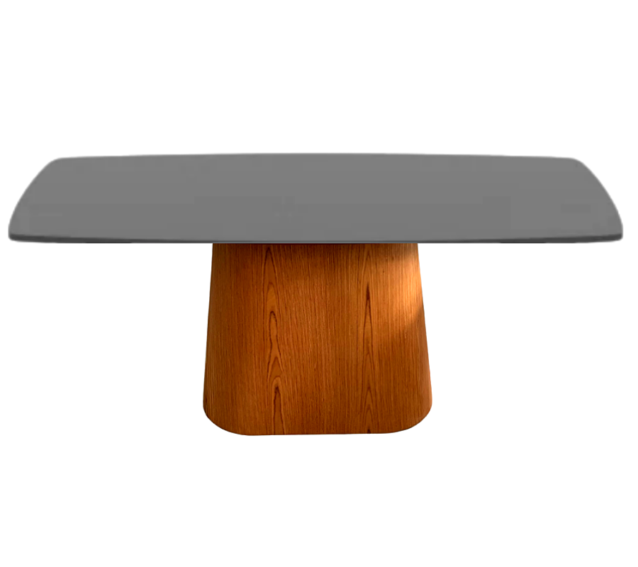 Mesa de Jantar Cone Retangular 200x100 cm Base Oval laminada em Madeira Freijó Tampo Laqueado - Pret
