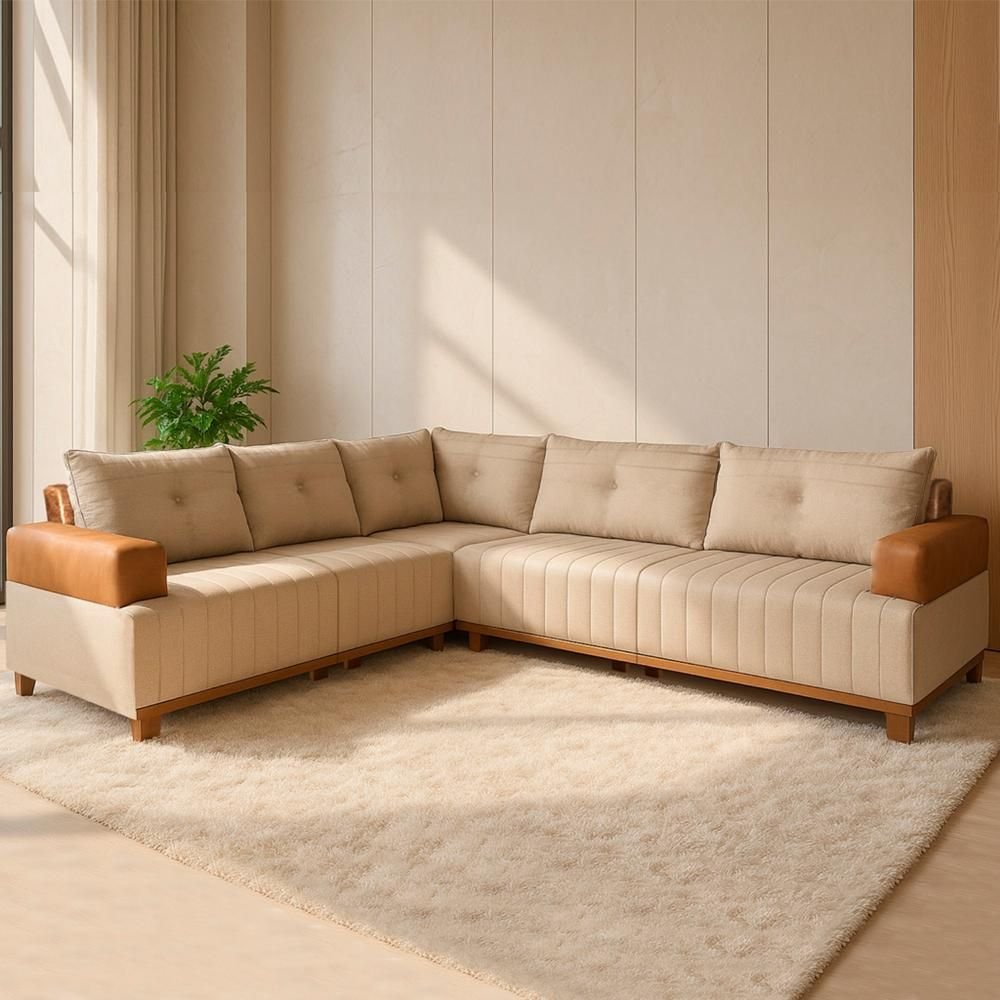 Sofá 5 Lugares 2,57x2,57m Canto Leona Luxo Bom Pastor Linho Bege/caramelo